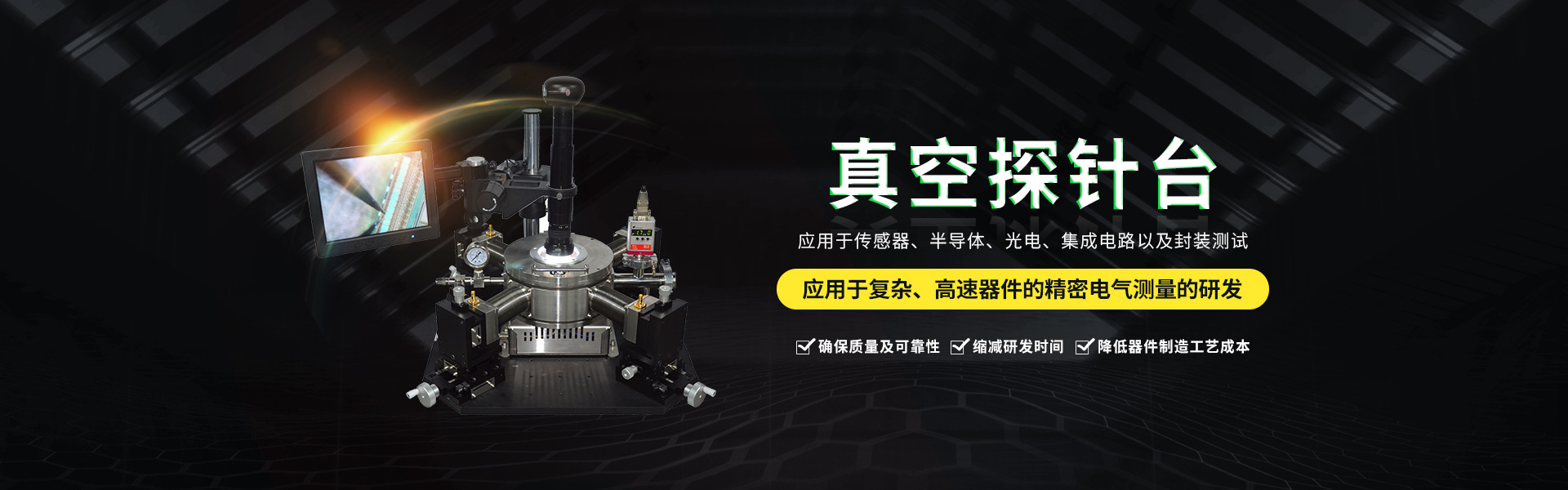 微型真空探針臺(tái)設(shè)計(jì)有進(jìn)氣口和抽真空接口其真空度用機(jī)械泵可達(dá)<5Pa分子泵可達(dá)<-3Pa。真空信號(hào)連接處使用高級(jí)真空電極信號(hào)接頭,保證氣密性及抗干擾性能。使用時(shí)將需將待檢測的器件方在加熱臺(tái)面,探針尖處由...
